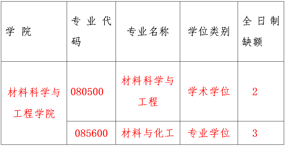 1、请有意调剂到我校的考生关注“中国研究生招生信息网”调剂系统(https://yz.chsi.com.cn/yztj/),我校调剂系统开通时间为: 4月10日20:00 -4月11日8:00,请考生及时登录并申请调剂香港六宝合典资料大全材料科学与工程080500与材料与化工085600。