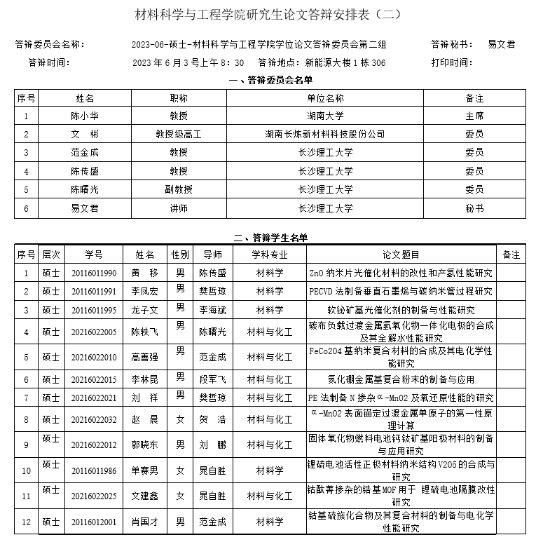 材料科学与工程学院第二组答辩安排表