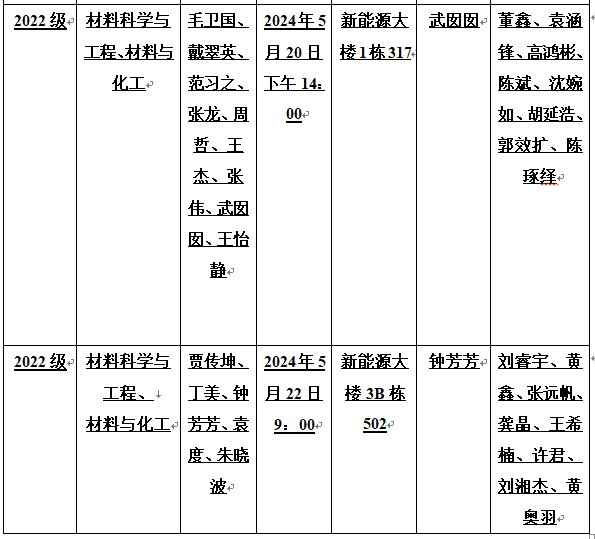 香港六宝合典资料大全材料科学与工程学院研究生中期考核安排表(更改)