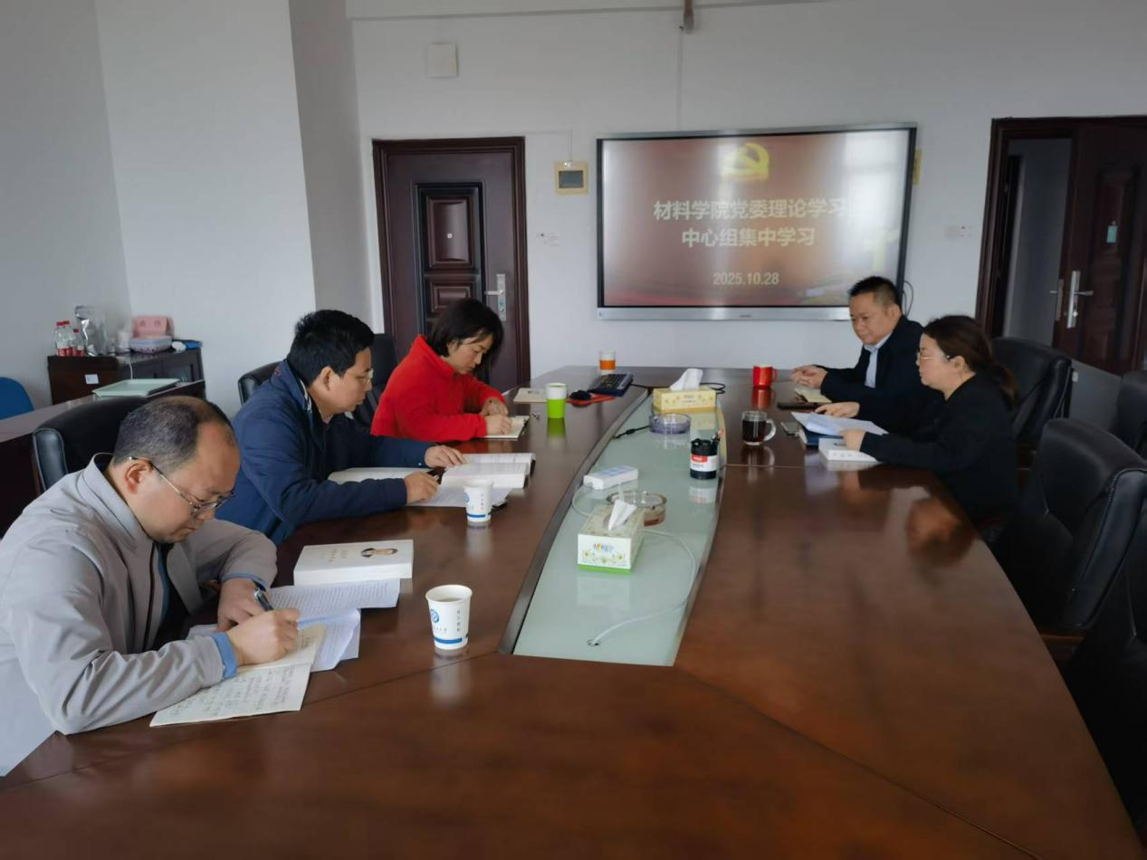 10月28日上午,材料学院党委中心组在924会议室举行集体学习会,学院领导班子全体成员出席党委书记郑延恒领学。本次学习会聚焦近期重要理论精神和决策部署,旨在深化认识、统一思想,为推动学院高质量发展凝聚智慧和力量。