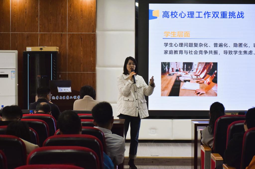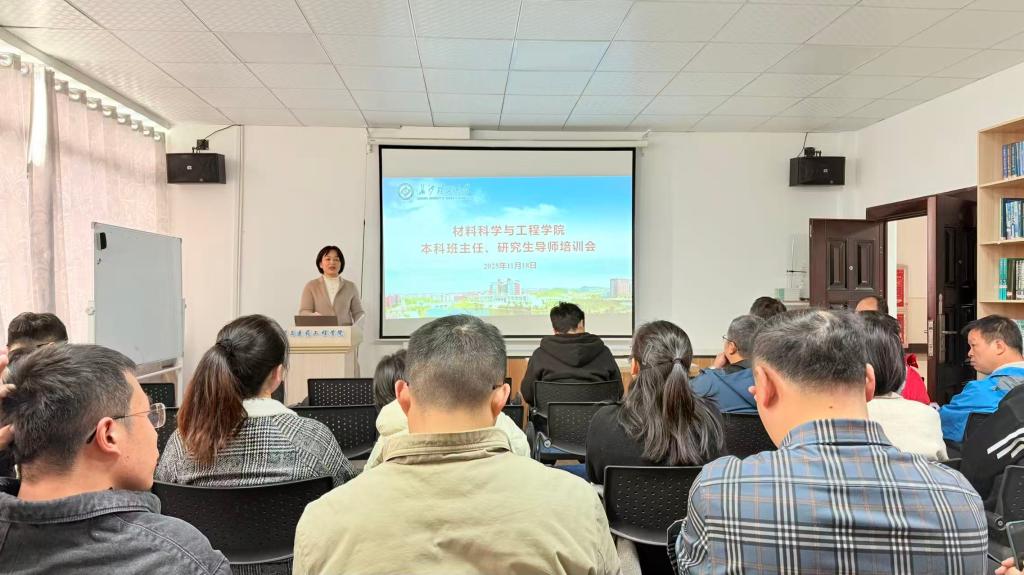 11月18日下午,材料科学与工程学院在工科楼三号楼B448和B319教室举行本科班主任与研究生导师培训会。会议聚焦学生教育培养与心理健康教育两大主题,由学院党委副书记邵巧艳、副院长谢炜教授及校心理健康教育中心主任易敏担任主讲,全院班主任和研究生导师参加。