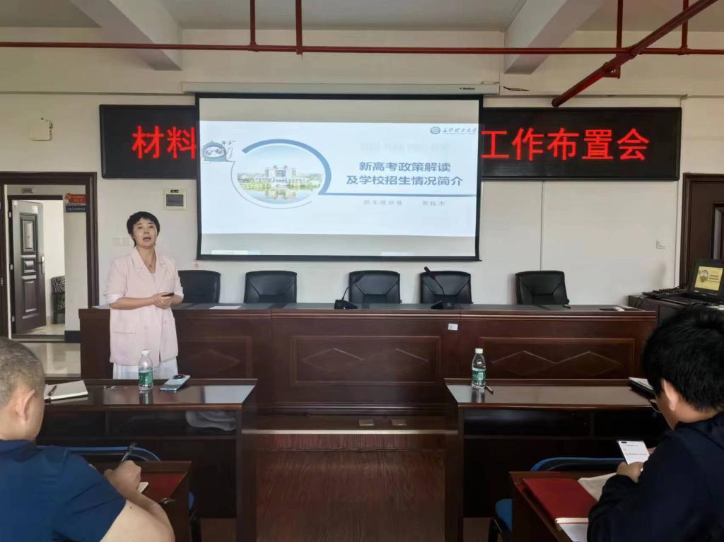 423日,材料学院在新能源一栋302会议室召开新高考政策解读及招生宣传会议,本次会议由招生科主任贺佐杰主讲,学院全体教职工参加。