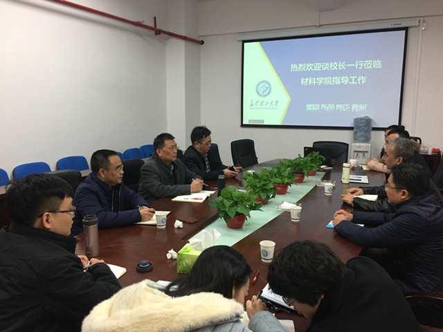 晁自胜院长对谈校长一行的到来表示热烈欢迎,他介绍了材料学院的概况以及人才培养目标,对学生工作在学院建院之初发挥的积极作用表示肯定,学院将不遗余力支持学生工作。随后,张国强作了学院学生工作汇报,材料学院的学生工作从学院建设及发展需要出发,以“立德树人”为根本目标,以学风建设为中心,构建并实施“基于学工视阈下多维度的材料学院学业发展教育模式”,将学生思政教育有机融入学生学业发展教育中,为学生精心打造“幸福材料家园”,以学校办学六十周年为契机,以“爱校、荣院”为主题,构筑学生很强的“家园”、“专业”归属感。