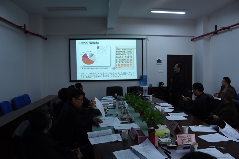 2016年12月16日,在新能源大楼317会议室,材料学院组织召开了新增专业“新能源材料与器件”申报的专家论证会。论证会邀请了中南大学赖延清教授、湖南大学王双印教授、湖南师范大学苏胜培教授、湘潭大学黎华明教授及校教务处刘朝晖教授、规划处卢毅教授、能动学院院长陈荐教授等材料方面的专家,组成评审专家组对新增专业申报进行论证。会议由晁自胜院长主持。
