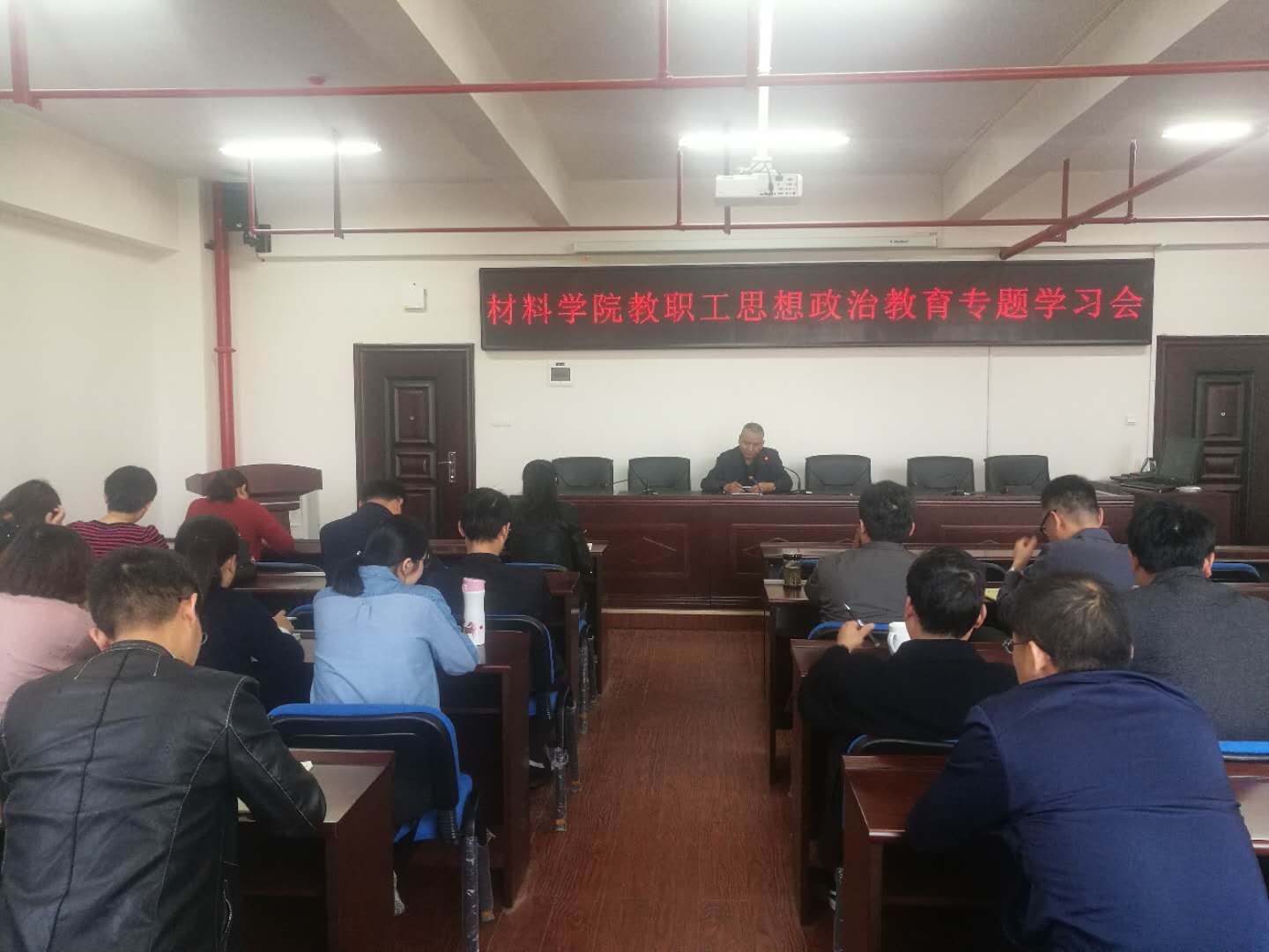 3月17日下午,按照学校党委“2018年教职工思想政治教育学习安排意见”的要求,材料学院在新能源大楼1号楼302多功能会议室开展了本学期第一次教职工专题学习会。会议由学院党委副书记唐青主持,学院领导和全体教职工参加会议。