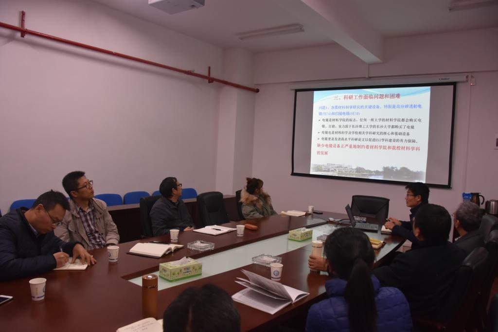 会上,分管科研副院长范金成详细汇报了学院的基本情况、目前面临的困难和问题及学院国家自科基金的进展等情况。湖南省团队百人计划项目负责人贾传坤教授也汇报了团队的建设情况和所取得的成绩。