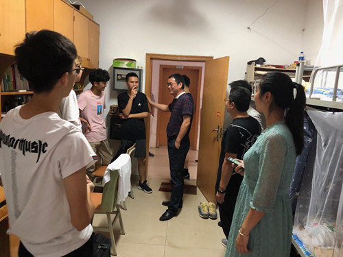 6月5日,在端午节来临之际,材料学院全体党政领导在院党总支书记张国强的带领下,深入走访学生宿舍。