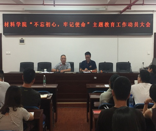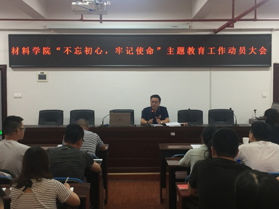 9月17日下午2:00,我院在302多功能会议室召开了“不忘初心、牢记使命”主题教育工作动员大会,32名教工党员、39名学生党员出席了本次动员大会。院党总支书记张国强作《材料学院党总支关于“不忘初心、牢记使命”主题教育工作实施方案》动员报告,张书记动员会上强调:要把开展“不忘初心、牢记使命”主题教育作为学院当前一项重大政治任务,按照“守初心、担使命,找差距、抓落实”的总要求,切实增强全体党员“四个意识”、坚定“四个自信”、做到“两个维护”。牢牢把握住中国特色社会主义高校办学方向,紧密结合立德树人根本任务,重点以理论武装,党建引领为主线,检视问题,聚焦八个方面问题务实整改,攻坚克难,推进学院建设发展有成效。引领广大教职工自觉将思想和行动统一到学校、学院的发展要求上来,以饱满的热情和奋斗的状态共同推进学校“双一流”和“百强”大学建设。