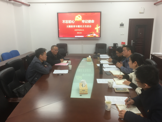 会上,张书记首先通报了本次“不忘初心、牢记使命”专题民主生活会的准备情况,叶泽副校长对开好本次主题教育民主生活会提出了要求,随后,总支书记张国强代表学院领导班子作对照检查发言,其发言包括2019年度班子民主生活会存在问题整改情况、本年度班子存在问题、原因剖析、整改措施等内容。随后,领导班子成员依次作自我检视剖析发言,开展批评与自我批评。大家在发言中坚持开门见山、开诚布公、严肃认真地提出意见建议,帮助改进提高,进一步统一思想、明确方向、凝聚力量,达到了“团结—批评—团结”的目的。