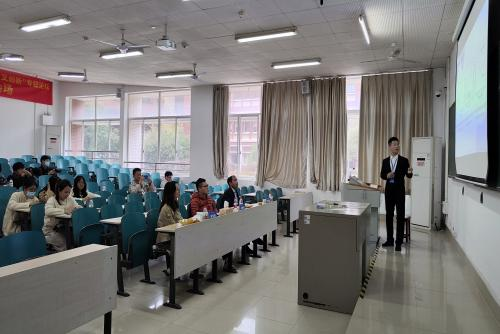 聂舟教授做了题为《新型功能核酸分子工具:从生物成像到细胞调控》的精彩报告,详细讲解了其在“基于新型重组酶工具的超灵敏临床样品分析”方面的工作,通过构建酶活分子开关,实现响应型酶催化放大。报告内容生动形象,在场师生受益匪浅。