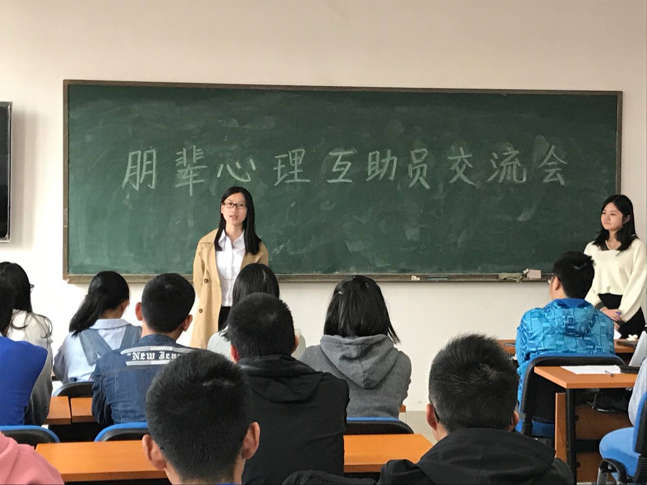 会上,谢老师明确了各位心理朋辈互助员的职责,并就大一到大四学生容易出现的心理问题做了简单的分析。对大一新生而言,问题容易出现新环境适应性问题,如人际关系不适应,学业压力等。大二学生容易出现懒散和懈怠状态,需要及时提点。到了大三,学生面临着考研或者就业的人生选择压力。接着,老师着重强调了要关注大四学生考研和就业的成功与否,并要及时在其失意时给予疏导安慰。