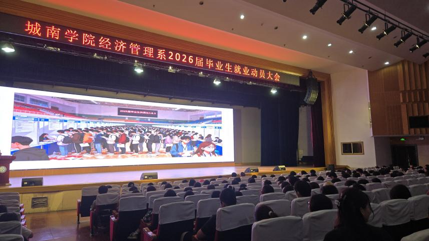 为帮助 2026 届毕业生认清就业形势、明确发展方向、提升求职竞争力,城南学院经济管理系于9月18日下午召开 2026 届毕业生就业动员大会。学院党委书记施一满、副院长朱广峰、优秀校友代表杨婵、系辅导员林安妮、马泽龙及全体毕业生参加了本次大会。