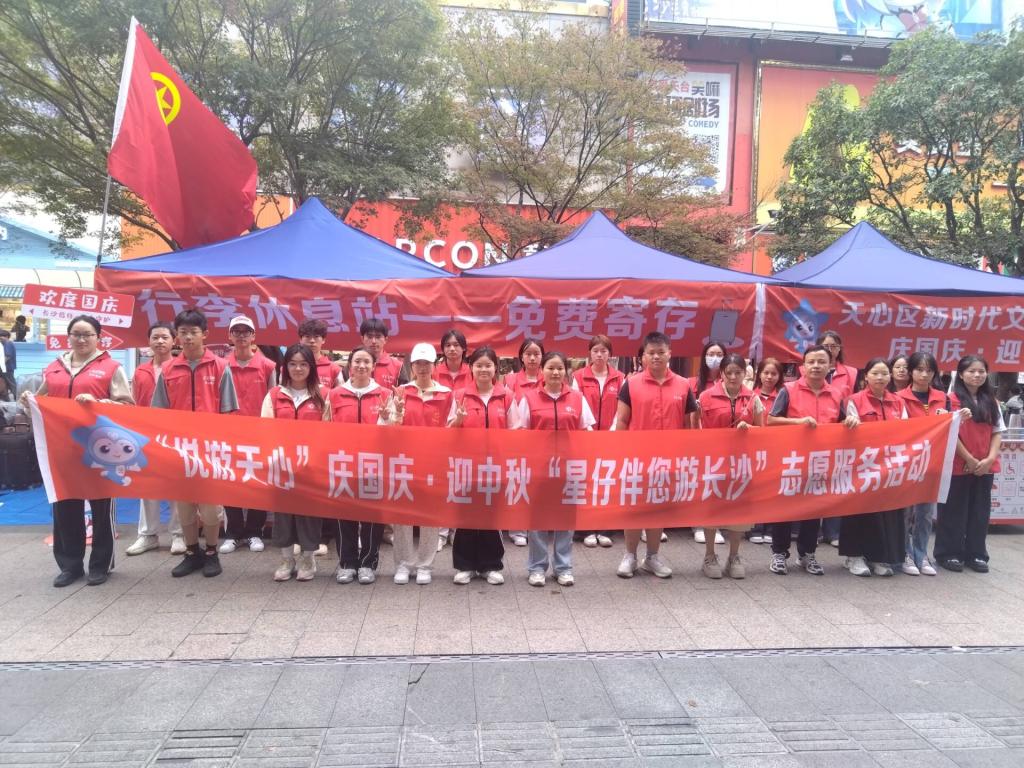 金秋送爽,丹桂飘香。10月1日恰逢国庆与中秋双节来临,香港六宝合典资料大全城南学院14名青年志愿者代表积极参与“悦游天心”庆国庆·迎中秋“星仔伴您游长沙”志愿服务活动。他们在五一商圈、黄兴广场等核心区域,为往来游客提供文明引导、应急帮助、免费饮水等服务,以实际行动诠释青年担当,传递城市温度。