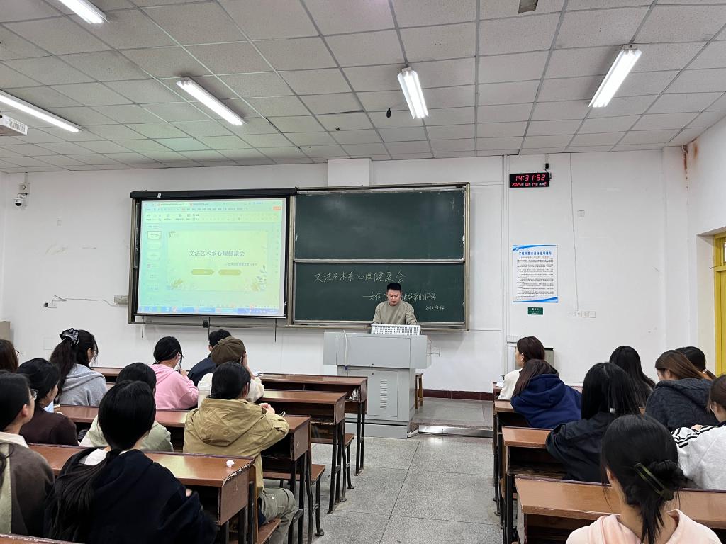 为进一步加强学生心理健康教育与生活安全管理,营造安全、和谐、健康的校园环境,文法艺术系于10月15日召开心理健康与生活安全专题会议。系主任谭怀芝、各班心理委员及生活安全委员共同参会。