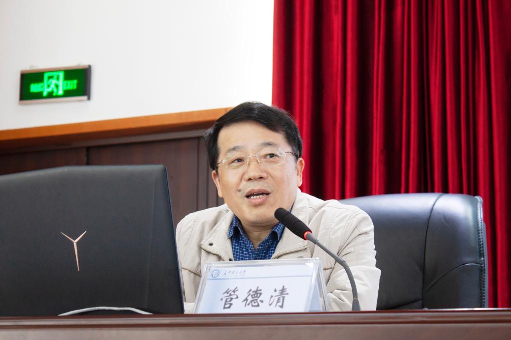 10月23日下午,学校2021年处级干部任职能力提升专题培训班第三场专题报告会在云塘校区一办公楼九楼会议室举行,我校原研究生院院长管德清教授为全体学员作了题为《讲政治勇担当善作为,为全面建成‘百强’大学贡献力量 》的辅导报告。报告会由党委组织部副部长、党校副校长靳攀科主持。