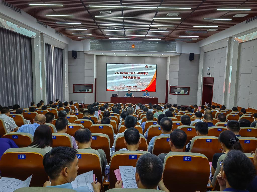7月4日下午,我校召开领导干部个人有关事项集中填报培训会,党委副书记刘建民,个人有关事项填报对象参加会议。会议由党委组织部常务副部长陈曦主持。
