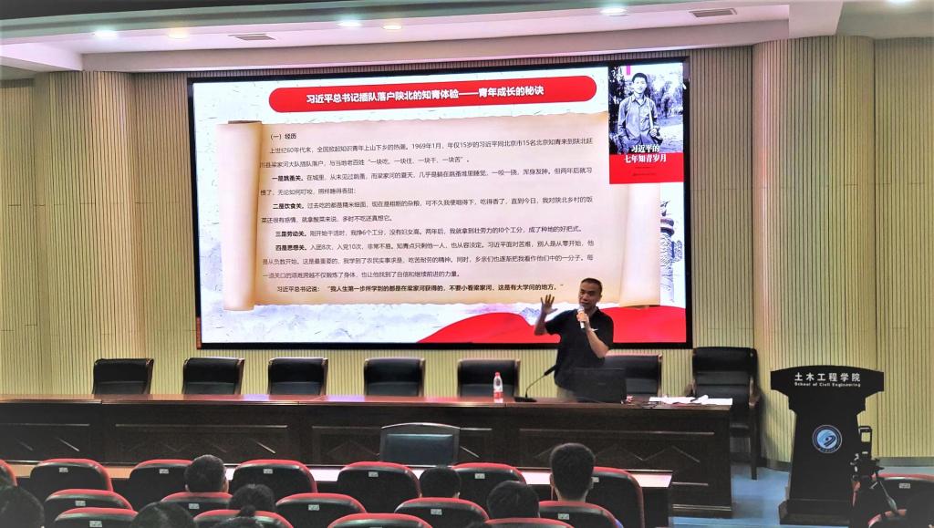 9月28日,土木工程学院2022级研究生“书记第一课”专题讲座于工科二号楼B302举行。学院党委书记江河主讲,活动由研究生辅导员王中兴主持,全体研究生新生代表参加。