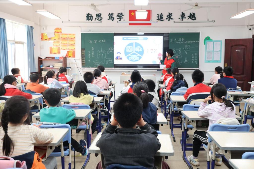 在反霸凌宣讲课堂上,普法团队员结合《未成年人保护法》相关条文,以适合小学生的语言表达阐述了霸凌的表现形式,用真实案例说明校园霸凌的危害,教导小朋友们在面对校园霸凌时要“及时报告、保全证据、优先自保”;在禁毒宣传中,普法团队员详细讲解了毒品的分类、伪装特性及多维度危害,通过实物图片直击新型毒品伪装陷阱,引导同学们树立毒品防范意识。