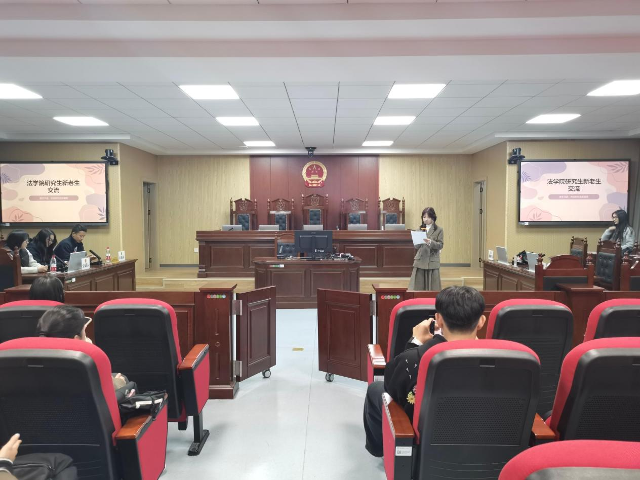 为帮助2025级研究生新生更好地融入新阶段的学习与生活,法学院于10月24日晚,在4号教学楼模拟法庭成功举办了“新老生经验交流会”暨学业规划与培养计划交流活动。本次活动由2025级法律硕士毛晓琳主持,2023级法律硕士何慧、罗浩栋以及2024级法律硕士刘文婷主讲,2025级全体研究生参加。