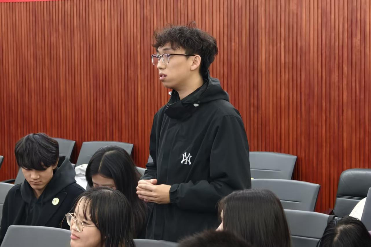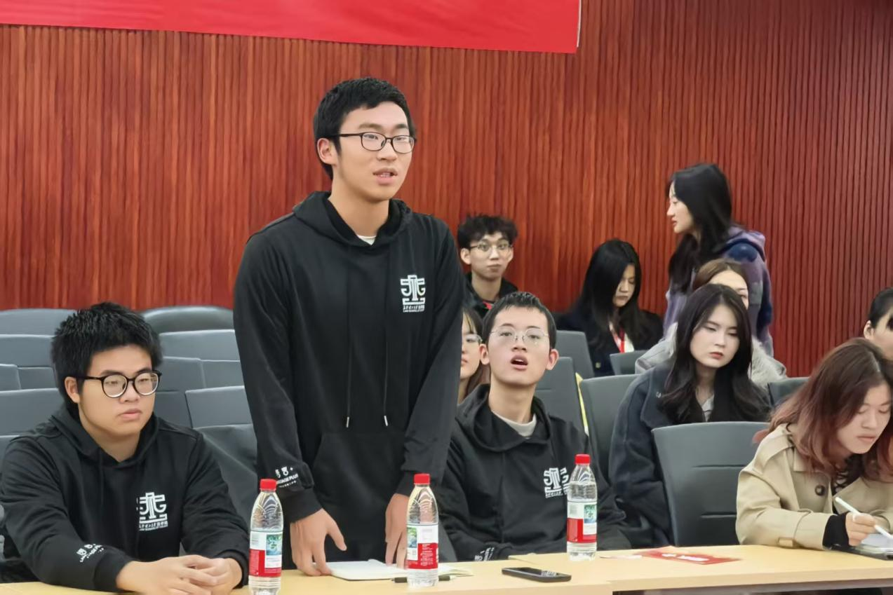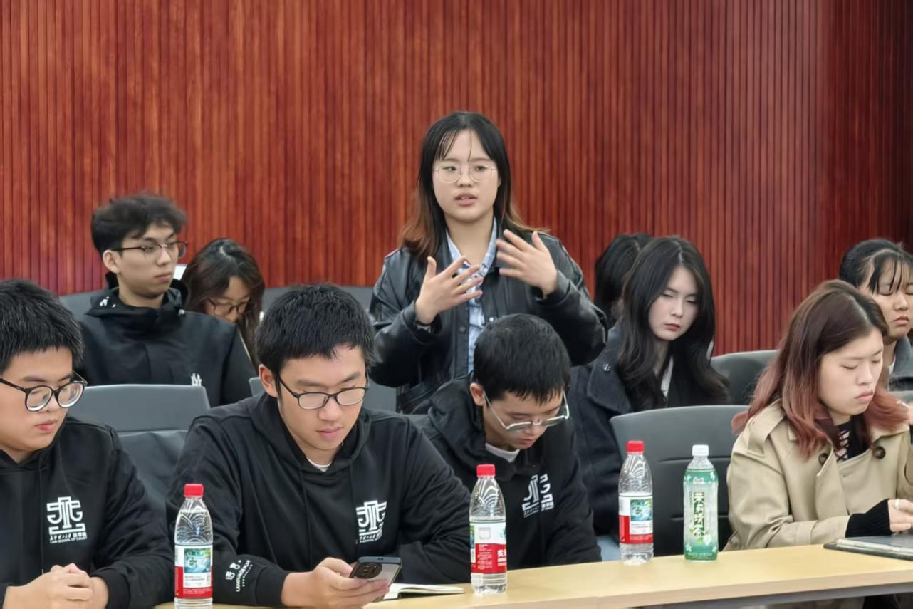 活动伊始,王寰副教授以“宪法如何影响青春成长”为切入点展开讲述。随后,现场播放了主题微电影《宪法—生》,梳理了宪法诞生与发展的关键历程。影片结束后,两名学生结合影片内容与自身经历,围绕宪法修订与校园生活、法学生职业发展与创业机遇等话题分享了见解,进一步增强了课堂互动性与现实联系,为后续环节营造了良好氛围。