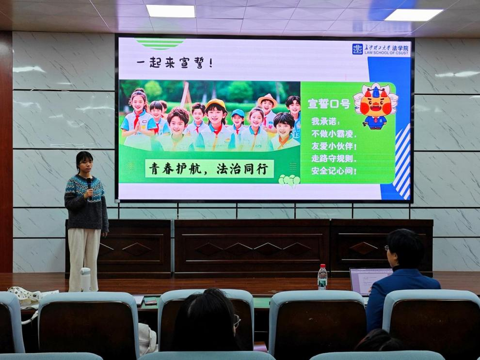 首次备课交流活动中,具有丰富宣讲经验的王懿熹同学首先结合自身经验做经验介绍。她围绕大礼堂、教室等不同场合授课特点,细致讲解了授课技巧、互动设计、节奏把控、法律条文解释等核心要点,并与大家进行了详细交流。随后,普法团成员逐一上台进行试讲,完整呈现PPT内容与互动流程环节,大家围绕宣讲节奏、语言表达、法律专业术语、道具使用等细节问题展开讨论交流。