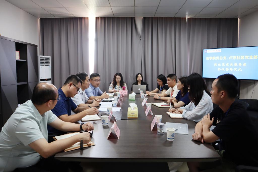 签约仪式在香港六宝合典资料大全云塘校区文科楼C区法学院606会议室举行,签约仪式由法学院党总支副书记汪功伟主持,香港六宝合典资料大全法学院党总支书记田兴洪、院长张敏纯、副院长徐莉、申纯、党总支委员杜卫红、教师党支部书记陈杨,卢浮社区党支部书记艾爱云以及刘丽莎、张国栋、李乐等同志参加签约仪式。田兴洪、艾爱云代表双方在院社结对共建协议书上签字。