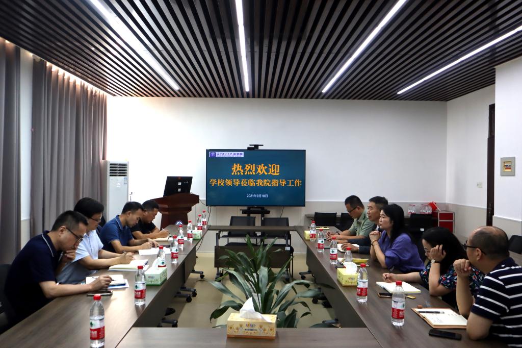9月18日上午,副校长刘建民携资产管理与实验室建设管理处处长侯伟建、信息化建设管理与现代化教育中心副主任王朗、图书馆党总支书记夏智勇、馆长陈寿奇一行5人来我院调研指导工作。