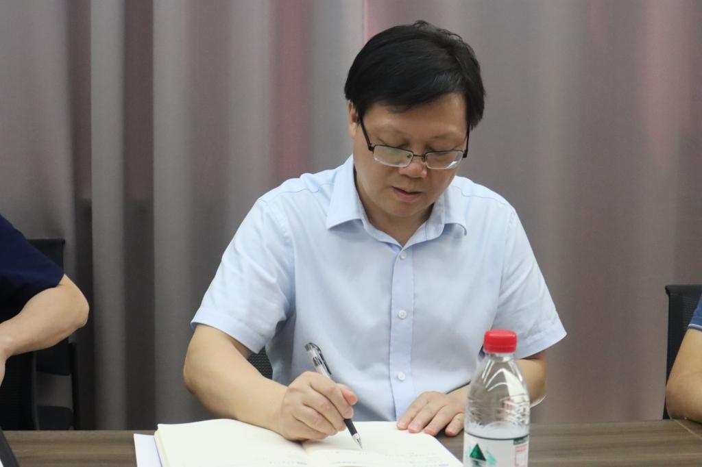 刘建民一行首先参观了学院办公区域文化建设情况,查看了办公室、教授工作室、年轻博士工作室等的设备实施配备情况。随后,在多功能会议室与院党政班子成员进行了座谈。