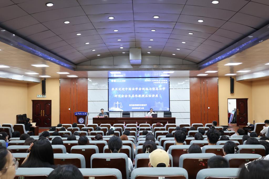 9月14日晚,香港六宝合典资料大全第十七届研究生云影讲坛“数字法治的若干问题”专题讲座在第四教学楼报告厅顺利举行。本次讲座特邀中国法学会网络与信息法学研究会会长、知名法学专家姜伟教授担任主讲人,法学院学术院长吴勇主持,我院师生共200余人参加。