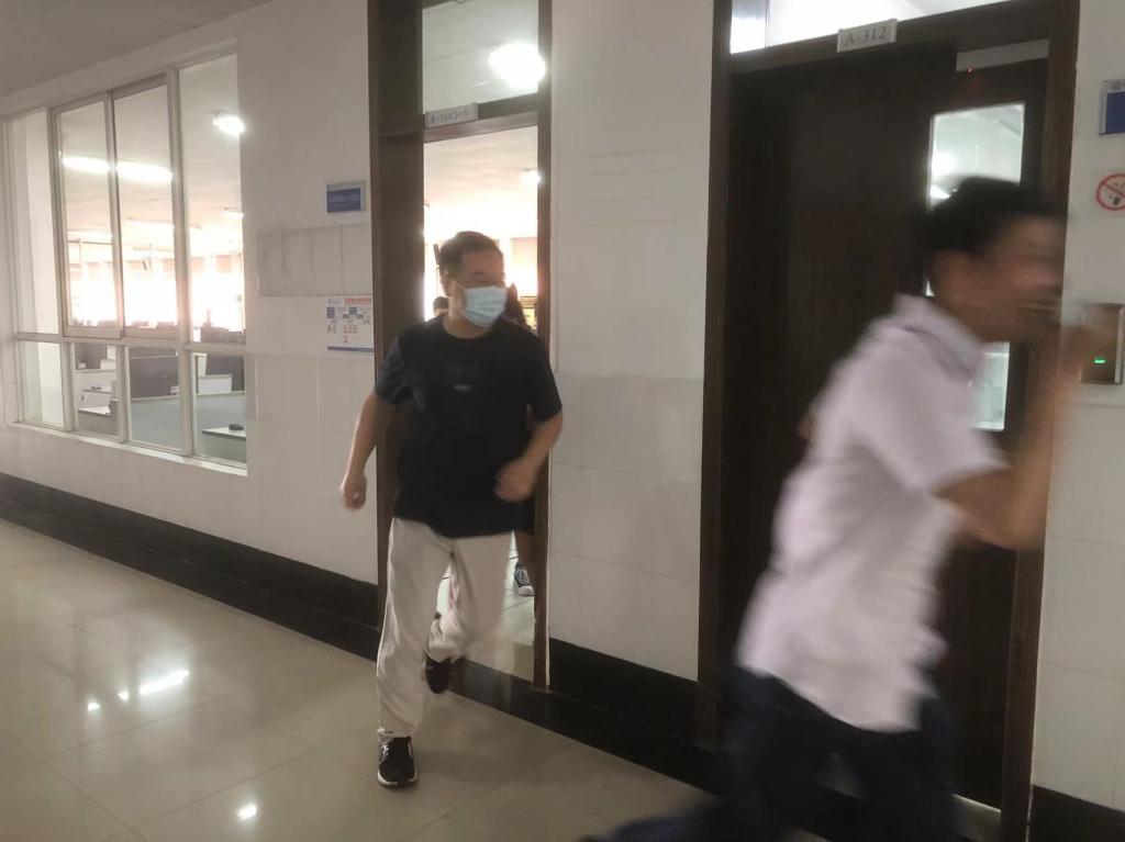 在紧急疏散应急演练和消防演习活动阶段,一部分老师在计算机中心三楼机房进行紧急疏散应急演练,另一部分老师在机械工程训练中心一楼进行实验室消防安全演练。大家亲身体验了当火灾发生时,如何迅速有效的报警;如何按照正确的方法使用干粉灭火器灭火;如何及时有效的组织师生有序地安全疏散;如何自救互救。