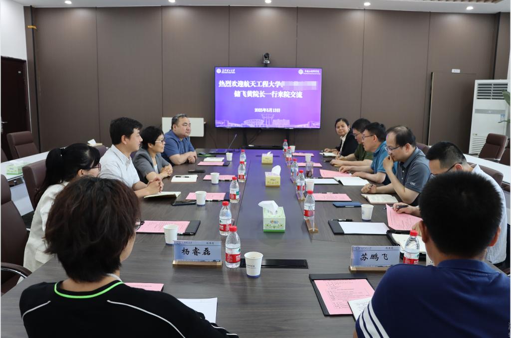5月13日上午,航天工程大学某学院院长储飞黄等一行7人来院调研交流。院长韩艳、副院长吴钢、挂职副院长商雄军、教育教学办公室主任计潇、工程创新训练中心副主任滕瑞参加会议。会议由吴钢主持。