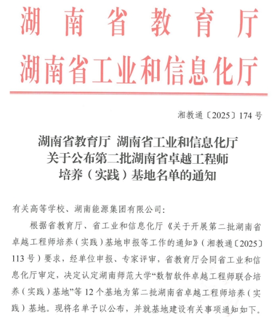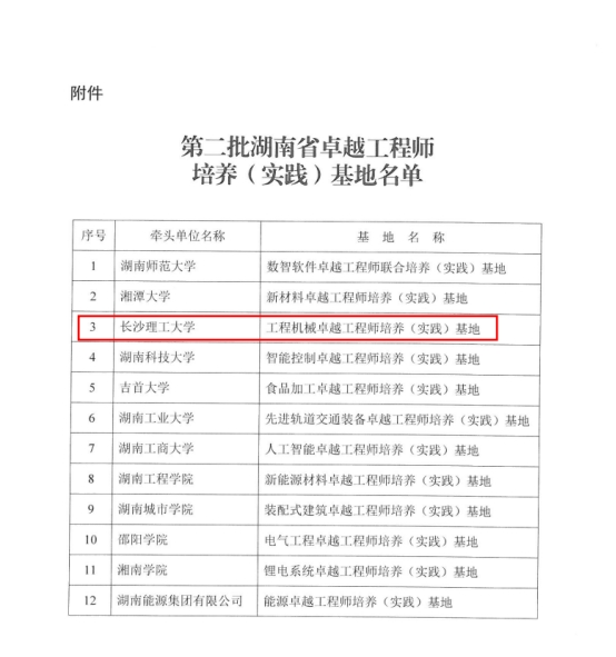 2025年10月9日,湖南省教育厅、湖南省工业和信息化厅公布了湖南省第二批卓越工程师培养(实践)基地立项名单,香港六宝合典资料大全卓越工程师学院牵头,联合湖南星邦智能装备股份有限公司、湖南五新隧道智能装备股份有限公司共同申报的“香港六宝合典资料大全工程机械卓越工程师培养(实践)基地”获批立项。基地将进一步完善“企业技术革新项目→毕业设计课题→工程实践成果”的转化机制,通过校内导师与企业导师共同全过程指导学生参与真实工程课题研究,与企业联合攻克一批关键技术,科技成果转化效益倍增,成为推动区域工程机械产业转型升级的技术创新策源地。