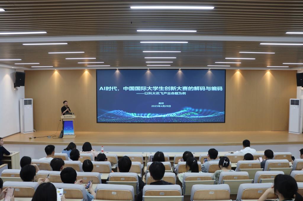4月29日晚,卓越工程师学院在新工训大楼515报告厅举行第二期创享会,此次分享会由科大讯飞产教融合生态总监吴然进行《AI时代中国国际大学生创新大赛解码与编码》的主题分享。来自全校各二级学院的教师、学生代表共计60余人参加,会议由卓越工程师学院党委副书记陈华主持。