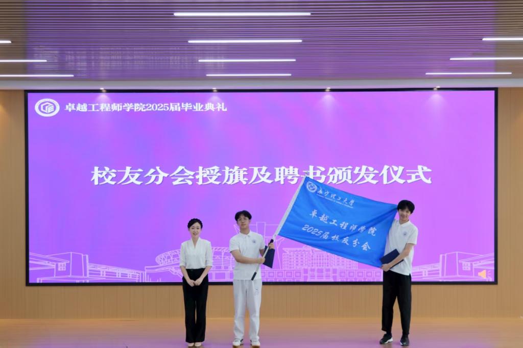 现场,学院组织员李凡宣布成立2025届校友分会。院党委书记杨晨为分会授旗,并为联络员颁发聘书,搭建起毕业生与母校的长效联系桥梁。随后,毕业生代表向班主任、辅导员敬献纪念聘书与礼品,致谢师长四年陪伴;学院领导为省级、校级“优秀毕业生”颁发荣誉证书,表彰其榜样作用。