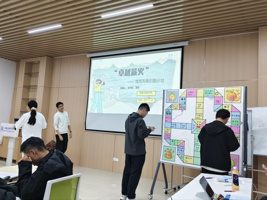 为充分发挥学生党员先锋引领作用,引领大一新生适应大学学习节奏、提升综合素养,11月16日晚,卓越工程师学院“党员先锋薪火引路计划”策划举办了一场别开生面的“学业领航飞行棋”特色活动。活动巧妙融合思想引领、学业帮扶与素质拓展,以轻松活泼的形式,为新生的成长之路注入正能量与暖意。