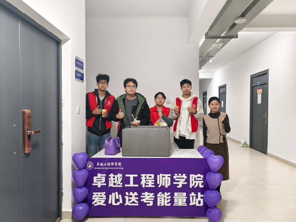 12月20日清晨,天色微曦。在至诚轩B区6楼的成长辅导室门前,一支由辅导员、学生党员、保研同学和学生会志愿者组成的服务队已早早守候。他们组成了“爱心助考团”,在全国研究生招生考试的这天早晨,设立“爱心助考能量站”,为即将奔赴考场的学子们送上特别的温暖。