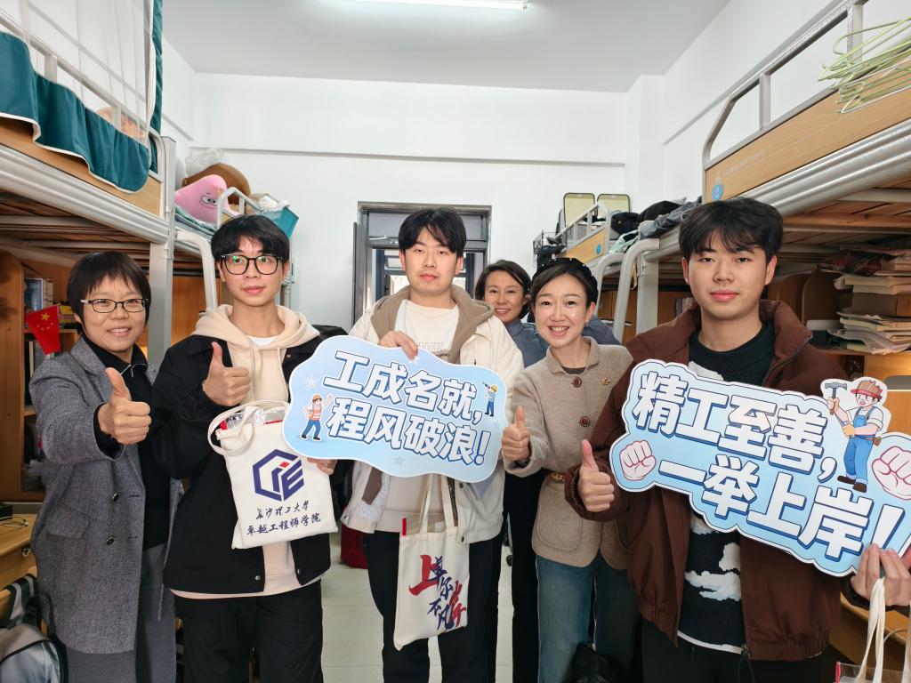 “礼包里的每样物品都考虑到了我们的实际需求,既有实用性,又有纪念意义,真的送到了我们心坎里。”一位正在复习备考的学生感动地说。学院领导老师逐个走访所有毕业生宿舍,温情问候关怀每一位同学。同学们纷纷表达对学院的感激之情,并表示一定全力以赴,争取“顶峰相见”。