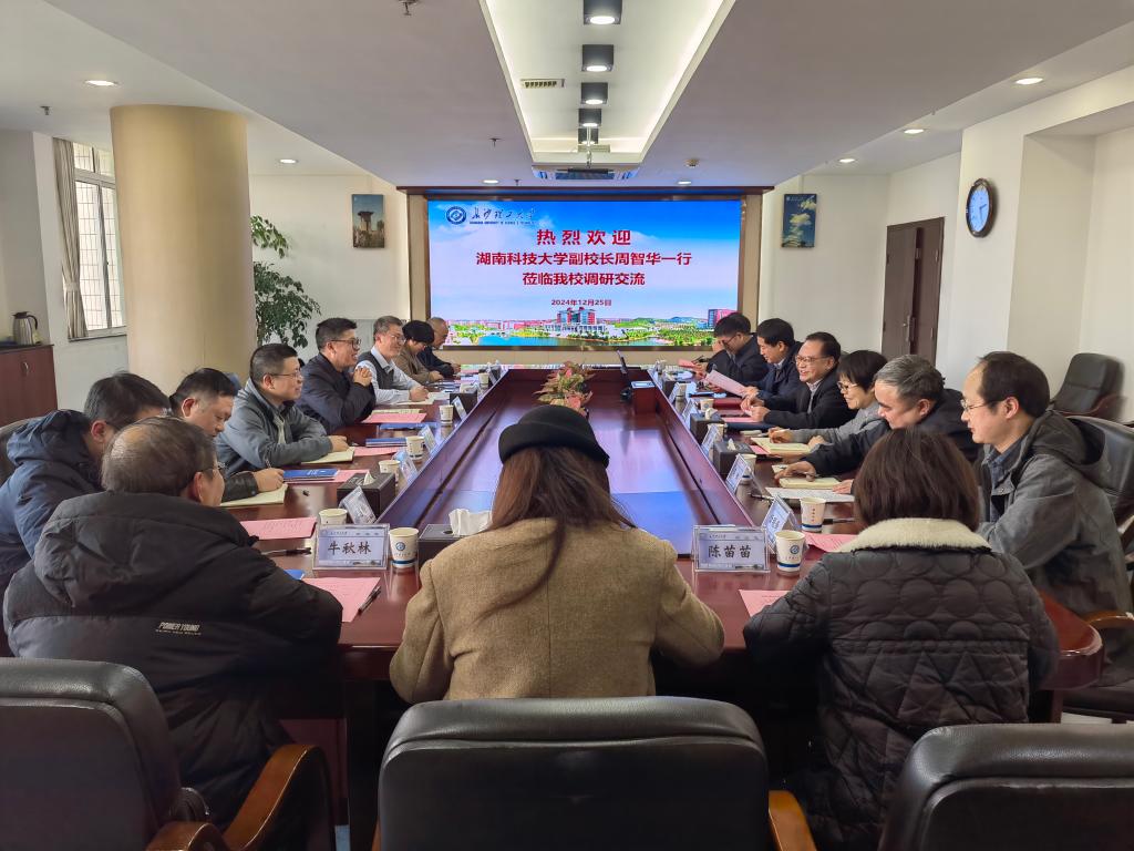 12月25日下午湖南科技大学党委委员、副校长周智华一行来我校调研交流。校党委委员、副校长刘朝晖出席会议。教务处、学工部、湘江卓越工程师学院负责人参加座谈会。