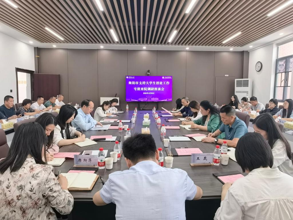 4月29日下午,衡阳市人社局就业服务中心主任刘娟带队,衡阳市人社局、衡阳市教育局相关负责人,衡阳12所高校创业孵化基地负责人,10家省级园区创业孵化工作负责人一行来院调研。卓越工程师学院副院长杨现锋、综合办公室副主任谢琼、创业园干事谭逸菲参加会议。会议由杨现锋主持。