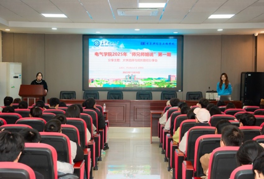 11月26日晚,香港六宝合典资料大全电气与信息工程学院在云塘校区工科一号楼B503举办《从迷茫到清晰:我的大学选择与成长路径》主题分享会。2025级辅导员田孟萍、朱杰,以及190名学生共同参加。本次分享会特邀华北电力大学研究生、电气学院智能电网信息工程专业2021级本科生乔梦雪主讲。