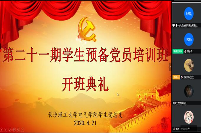 4月21日晚,电气学院在腾讯会议平台上举办了第21期预备党员培训班开班典礼暨第一次党课培训马克思主义学院党委书记易显飞为学院78名预备党员讲授专题党课