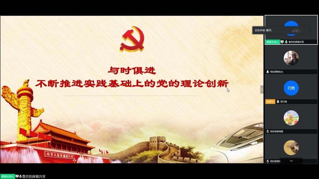马克思主义学院鲁芳教授讲述了专题党课《与时俱进,不断推进实践基础上的党的理论创新》。她从党的理论创新的基本线索、历史继承、实践本质、基本经验四个方面,系统阐述了中国共产党的理论创新。鲁芳强调创新是理论的生命之源,实践是创新的永恒依据,理论只有在实践中根据实践需要不断创新,才能保持勃勃生机,希望将对党的热爱付诸实际行动,争取早日加入中国共产党。