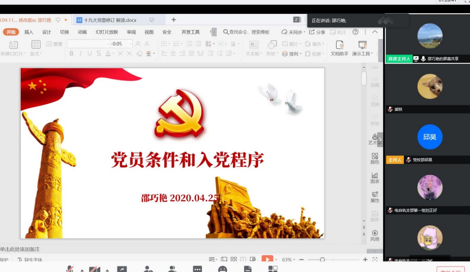 4月25日,电气学院运用腾讯会议平台举行了第35期学生入党积极分子培训班开班典礼与专题党课,学院共124名学生入党积极分子参加了本期培训。