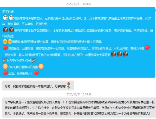 为帮助家困生顺利返乡,度过一个温暖、欢乐、祥和的春节,院勤助部学生干部通过细心筛查院家困生库,为路途遥远、无力购买返乡车票的同学发放“爱心”车票补助。