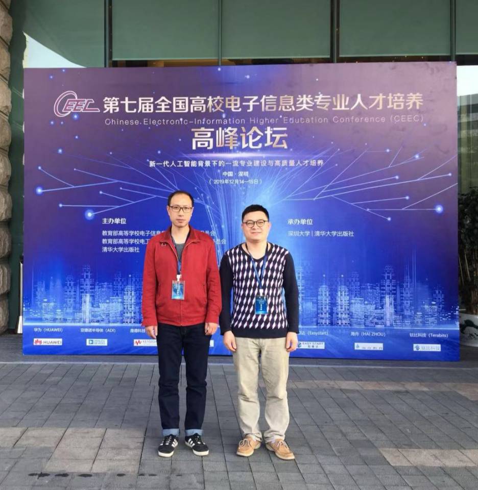 20191214日至15日,电气学院派遣电子系黄亚飞、袁志辉两位老师参加了在深圳举行的第七届全国高校电子信息类专业人才培养高峰论坛,该论坛由教育部高等学校电子信息类专业教学指导委员会、教育部高等学校电工电子基础课程教学指导分委员会联合清华大学出版社举办,论坛主旨是全面落实新时代全国高等学校本科教育工作会议要求,加快推进教育现代化实施方案,加快建设高水平本科教育,全面提高人才培养能力,探索高等教育内涵式发展的教学改革和专业建设,
