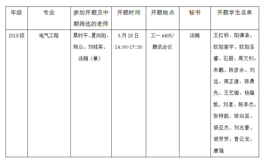 2020年电气与信息工程学院研究生学位论文开题及中期筛选安排表(六)