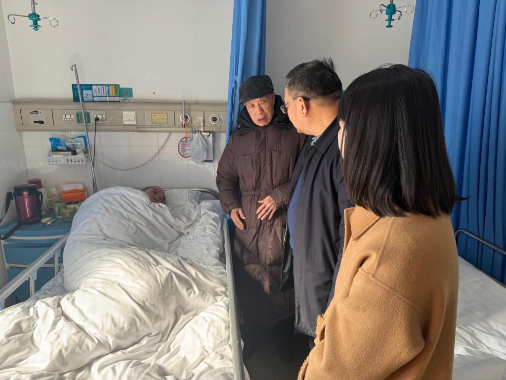 在医院探望中,唐超文向退休老干部晏巧云同志的爱人详细了解其生活状况和身体健康情况,并简要介绍学校这一年来的发展,感谢他们为学校的建设和发展所作出的贡献,耐心倾听他们生活中需要解决的困难和问题,叮嘱他们要保重身体,并送上慰问品。