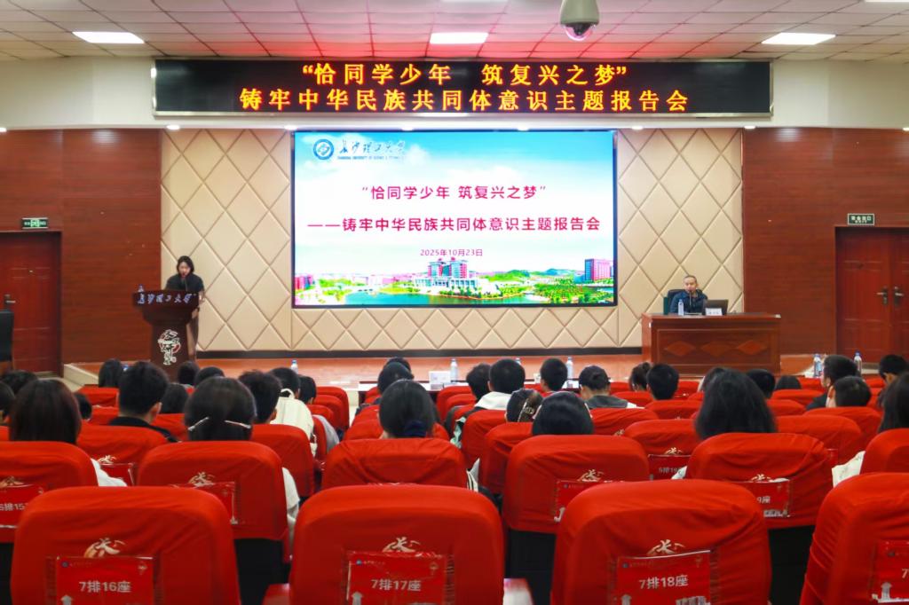 10月23日晚,学校邀请马克思主义学院余乃忠教授在文科楼报告厅作“恰同学少年 筑复兴之梦”--铸牢中华民族共同体意识主题报告会,校党委统战部副部长刘仁主持,全校170余名学生参加。