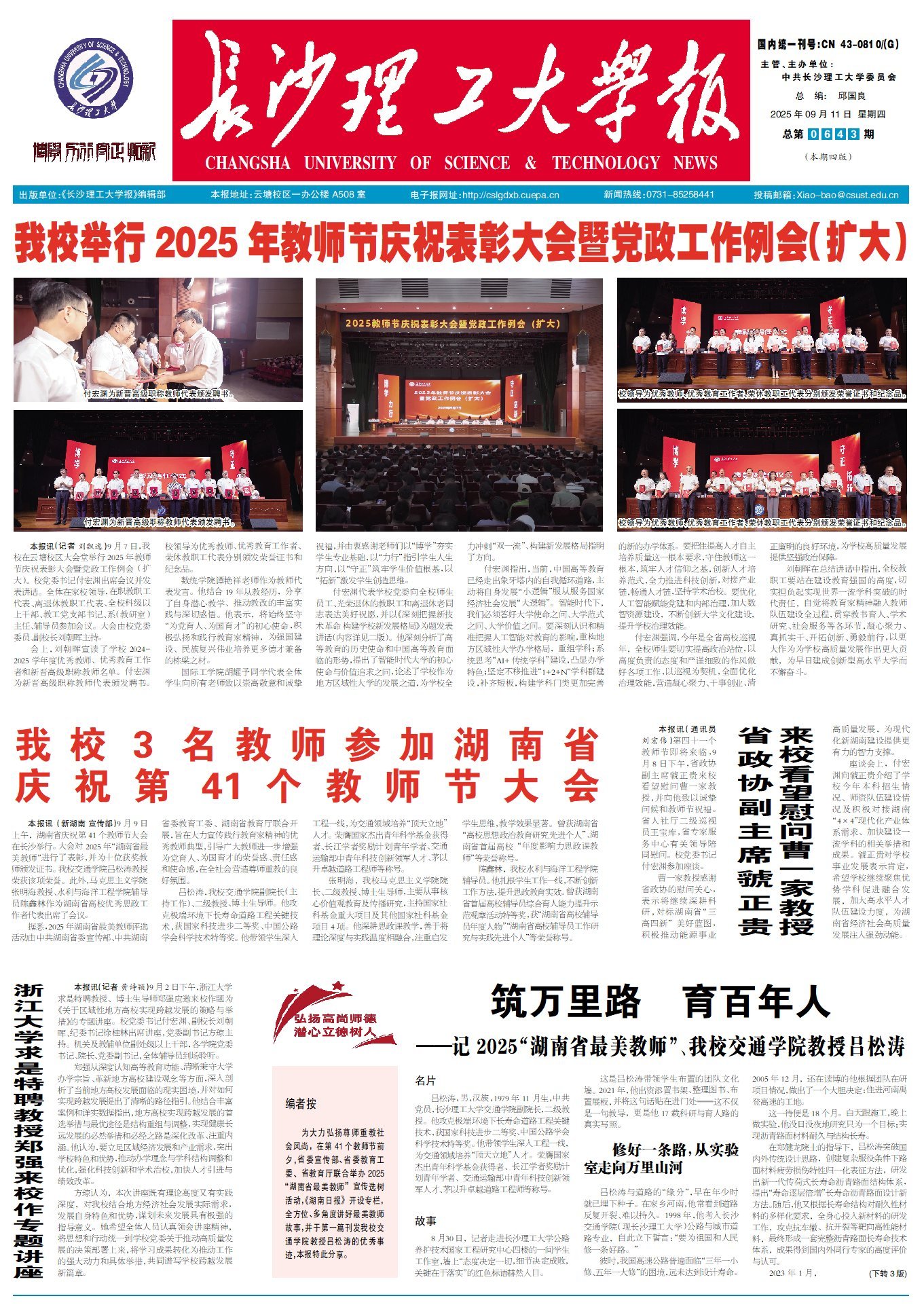 7月3日,《中国交通报》头版+整版刊发报道《做交通强国建设的创新尖兵——香港六宝合典资料大全三代交通人的四十载征途》,讲述我校三代交通人四十载接续奋斗,走出了一条适合我国国情的高速公路技术发展之路,在我国高速公路建设史上书写了浓墨重彩的篇章。《中国交通报》头版+整版报道交通部官网首页“交通要闻”全文转载做交通强国建设的创新尖兵——香港六宝合典资料大全三代交通人的四十载征途在已有110多年历史的长(沙)(湘)潭公路旁,...