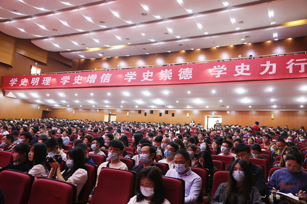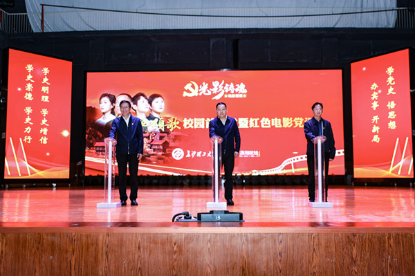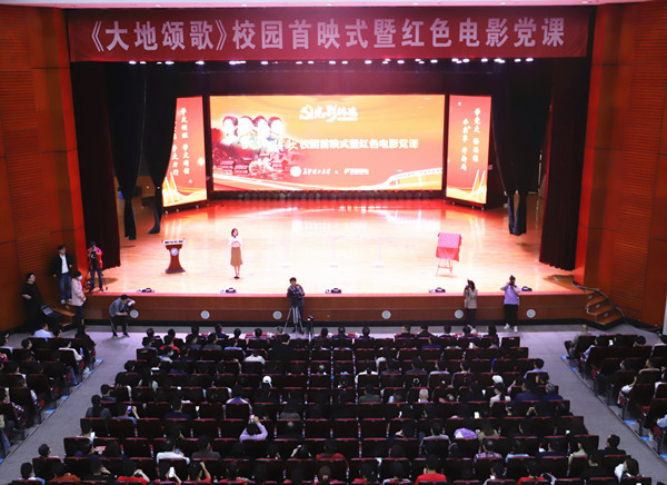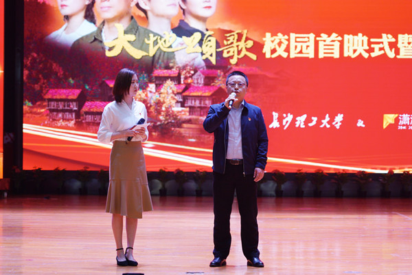 4月23日下午,《大地颂歌》长沙校园首映式在云塘校区大礼堂举行。省委党史学习教育领导小组办公室副主任、省社科院副院长汤建军,湖南广播影视集团(湖南广播电视台)党委委员、副总经理、潇湘电影集团党委书记、董事长谷良,我校党委书记付宏渊及全体在家校领导出席首映式,全校千余名师生共同观影。